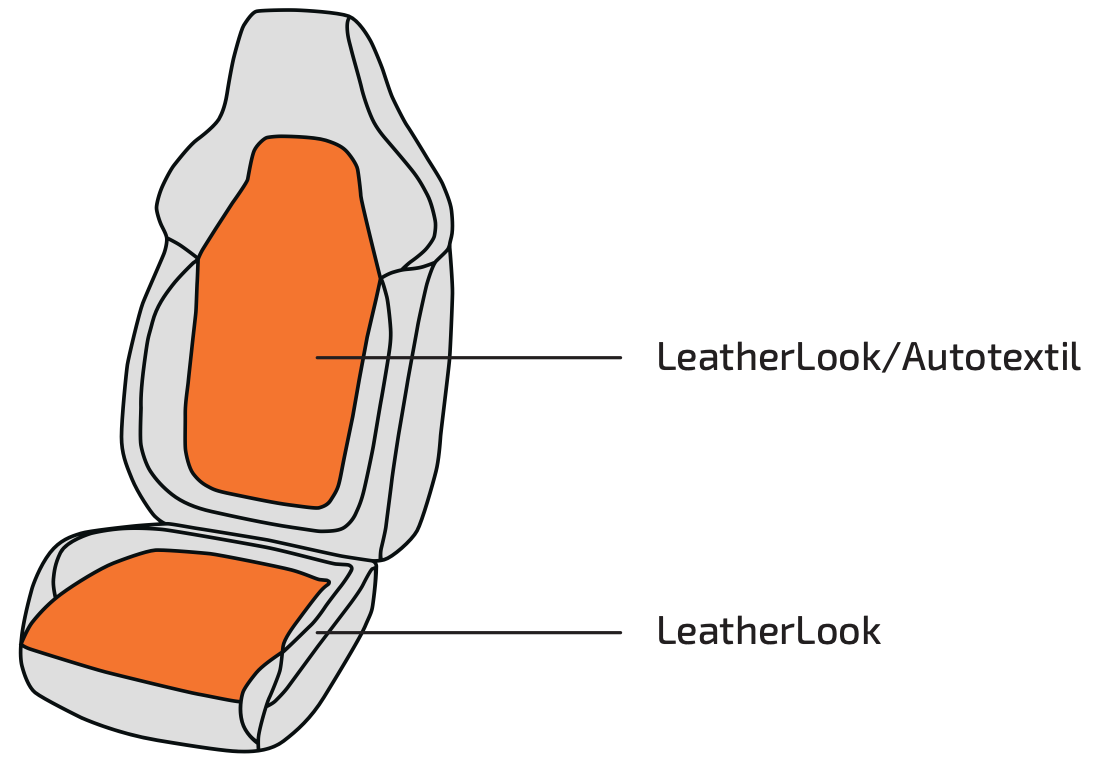 The Leather Look Collection offers versatility, allowing you to opt for either full synthetic OEM automotive leather or a combination with OEM Autotextil materials for the insert. The choice is entirely yours – whether you prefer full leather seats or wish to mix them with Autotextile, both options are seamlessly accommodated.